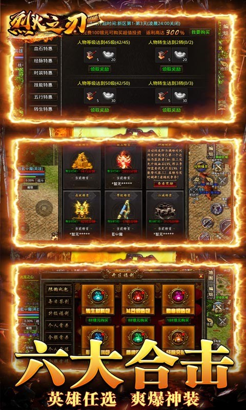 3、全新三职业合击,装备全靠爆,超多福利地图,全新版本等你体验!