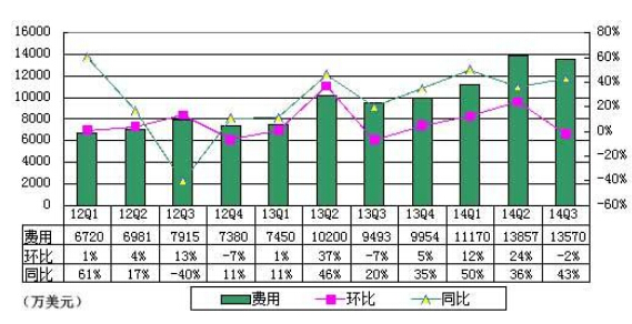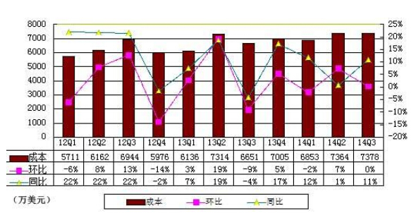 新浪第三季度成本为7378万美元,较上一季度持平,较上年同期增长11%。