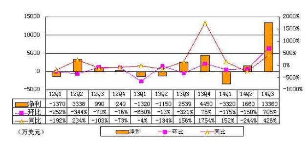 3) 470万美元的股权投资收益,依据非美国通用会计准则合收益710万美元,股权投资收益根据权益法进行计算,其公布递延一个季度。2013年第三季度非运营收益中包括320万美元的股权投资收益,依据非美国通用会计准则合收益570万美元。